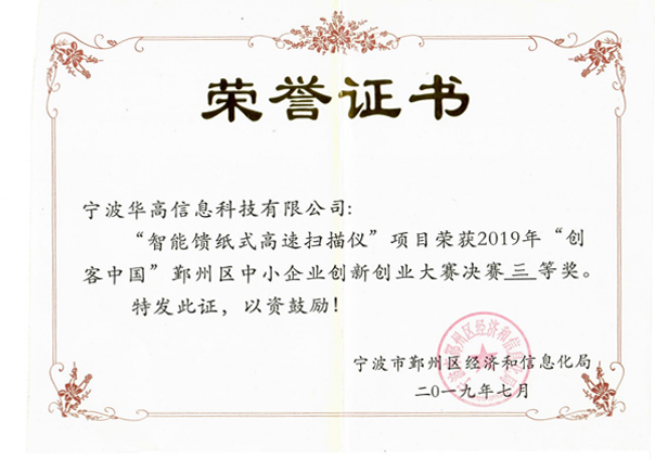 榮獲2019年“創(chuàng )客中國”三等獎榮譽(yù)證書(shū)