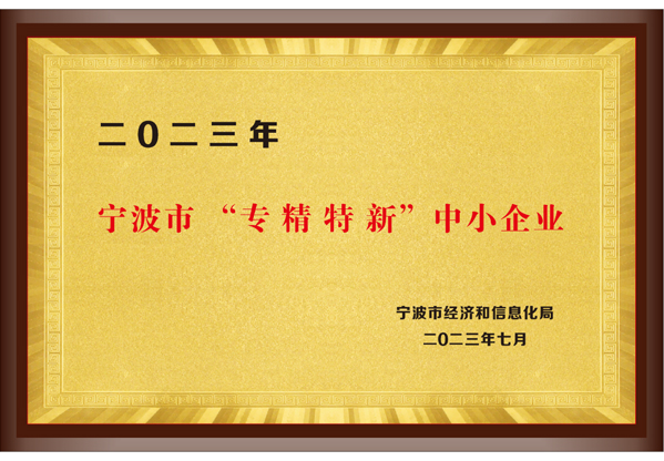 評為2023年寧波市 “專(zhuān)精特新”中小企業(yè)